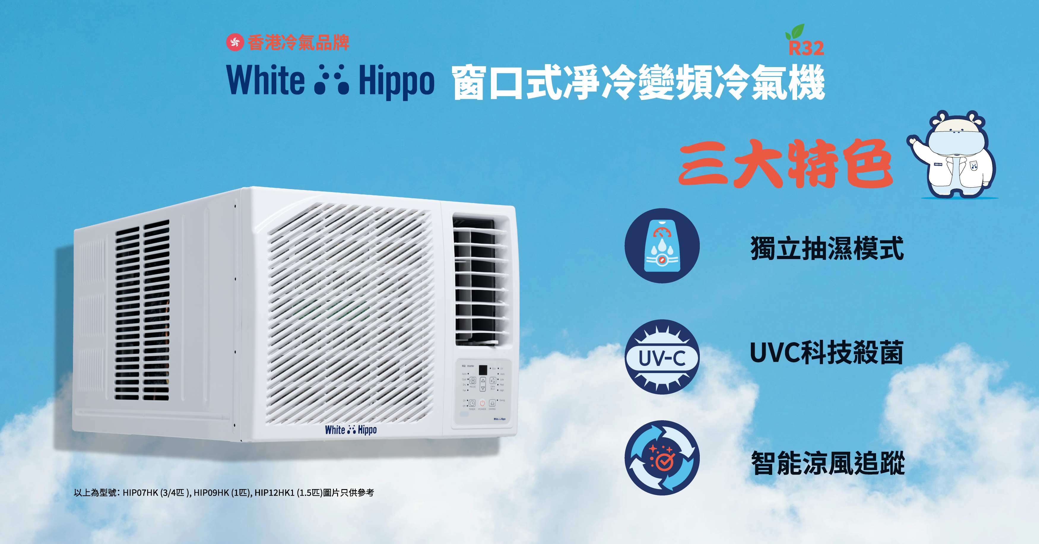 White Hippo 3/4匹窗口式凈冷變頻冷氣機 HIP07HK